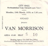 I coulnd’t let this section of my blogging pass without writing about Van Morrison again. I first saw Van Morrison at Newcastle City Hall in 1973. He had just created The Caledonia Soul Orchestra which is often considered to be “one of the tightest performing backup groups of the 1970s” (Wikipedia). This was, without any doubt, one of the greatest gigs I have ever witnessed. The concert was put on by local promoter Geoff Docherty and his Filmore North organisation, and it cost me all of 60p to sit at the back of the hall and witness one of the greatest singers and performers I have ever seen. Van sang with such passion and soul that night. I’ve seen him several times since this concert, but nothing has come close to matching that peformance. The tour was captured on the live lp: Its Too Late to Stop Now, some of which was recorded at a show at London’s Rainbow theatre, which took place just a couple of days before the Newcastle gig. The Rainbow Theatre gig was voted by Q Magazine readers as one of the top live performances of all time. Morrison was going through a divorce at the time and it is often said that his selection of material and impassioned performances were evidence of his inner turmoil. “I would say that that tour represented the height of his confidence as a performer,” band member John Platania remarked”, and the resultant double live album is considered as representing Van Morrison at his peak. I can picture him now, singing great versions of Here Comes the Night and Gloria. Everything about that show was perfect. The band was tight, the string section added a depth to the songs, Van was singing great, and more importantly he was clearly enjoying himself, and the crowd were up for it. We knew we were witnessing something special. If I had a time machine and could go back and relive a handful of gigs this would be one of them. I next saw Van at one or two festivals, including Knebworth, but didn’t catch up with him again at the City Hall until 1979. By then Morrison was moving in a more pop oriented direction, and although I still enjoyed the gig, the power and passion of that early 70s show was lacking.