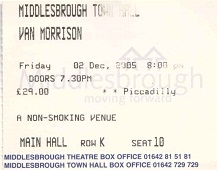 So it was in that frame of mind that I went to see Van again at Middlesbrough Town Hall in 2005. I saw glimpses of the old Van again at that gig. The set was short, and Van didn’t acknowledge the audience at all, but he sang well, and it looked like he cared again. The set included some of his well known songs such as Moondance and Brown Eyed Girl, and a bunch of stuff that I didn’t recognise, and I am pleased to say that I enjoyed it. I was sold out again.