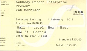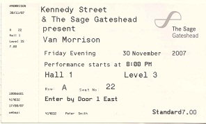 So it was in that frame of mind that I took Laura to see Van at the Sage in 2007. We had cheap seats looking down on the stage from above and once again, he delivered. The set included more classics than in 2005. I think we got Here Comes the Night and Gloria, certainly one of them if not both. Even Laura enjoyed it, and she has become quite hard to please. Those last couple of gigs have convinced me to catch Van each time he comes to the North East.