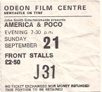 This was a pretty cool line up, and was my fist time seeing both bands. I knew a lot of stuff by America, but nothing by Poco. I went along with my friend Ian, as I recall. America had previously toured as support for Family in 1971, but the gig was the same night as Led Zeppelin played Sunderland Locarno (theres a gig I must report on), so I didn’t go. So when they returned to Newcastle for this gig at the Odeon I made sure that I attended. The Odeon is now sadly closed, but was an important venue for gigs in the North East in the early 70s. It was a little bigger than the City Hall, with a capacity of around 3,000, and I saw a few bands play there: Humble Pie, King Crimson, Black Sabbath, ELP, The Faces and The Who come straight to mind. BY the mid 70s it had sadly been converted to a multi-screen cinema, and the capacity reduced. I am pretty sure that this was the case for this gig. I recall both bands being really good that night. Typical America set list from 1975: Tin Man; Muskrat Love; Baby It’s Up to You; Moon Song; Old Man Took; To Each His Own; Lonely People; I Need You; Don’t Cross The River; Ventura Highway; Only In Your Heart; Woman Tonight; The Story of a Teenager; Half a Man; Company; Hollywood; Sister Golden Hair; Encore: Sandman; A Horse With No Name. I also googled and found a Poco setlist from 1974: Blue Water; Fool’s Gold; Rocky Mt. Breakdown; Bad Weather; Hoedown; Railroad Days; Ride the Country; Faith in the Families; Angel; Drivin’ Wheel; I Guess You Made It; Restrain; A Right Along; C’Mon. My friend John, who was also at this gig, has just emailed me to remind me that America/Poco played “Don’t Cross the River if you can’t swim the tide” with both bands on stage as the final number.