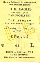 This was the Hotel California tour and The Eagles were returning to the UK as a massive sell out act. I’d seen them twice before, once supporting Neil Young at Newcastle City Hall in the early 70s, and secondly on a bill with Elton John and The Beach Boys on a long hot day at Wembley Stadium. They were great on both occasions so I was looking forward to seeing them as a headline act. Their UK tour took in a few dates, and the nearest was in the wonderful, and sadly missed, Glasgow Apollo. They played two nights, Saturday and Sunday and we went to the second of the two gigs. I drove up with my mate Ian, and we were both excited about seeing The Eagles. We had seats reasonably close to the front, but not too close, as the Apollo stage was very high and the view from the first few rows sometimes wasn’t great and you were guaranteed to leave with a stiff neck. According to the ticket support came from Dan Fogelberg, although I believe this was changed and the actual support was Valerie Carter. A published setlist (from the Apollo website) shows them opening with Hotel California, which would now seem a strange choice for a first song, but the album was new at the time and therefore not well known at all. My memories are of a great concert, and of the band returning for an encore wearing kilts and accompanied by a lone Scottish piper.
