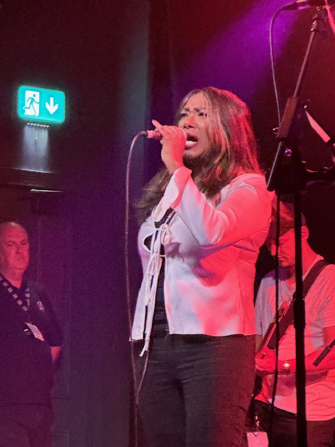 This included, as I recall, Guinness which tasted great, nice, and cold. We managed to get situated right in front of the stage and were treated to an excellent set of jazz, blues and soul delivered by none other than D C Lee herself, accompanied by an excellent band. Halfway through, the aforementioned singers Steve White and Steve Edwards took centre stage for their own short set.