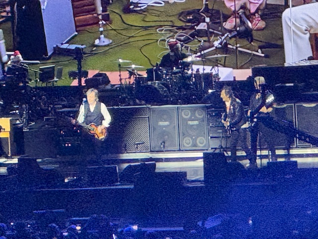 This wasn’t just two legendary musicians reuniting; it was two Beatles, together again on the same stage. I don’t mind admitting that I broke down in tears. Something was unfolding in front of my eyes that I thought I would never witness. I quickly texted the kids to tell them what had just occurred. They launched into “Sgt. Pepper’s Lonely Hearts Club Band (Reprise),” and it felt like the entire arena was levitating. Ringo behind the drums, Paul on bass—just like the old days. Then, without pause, they tore into “Helter Skelter,” with McCartney howling through the verses while Ringo thundered away on the kit. It was raw, electric, and utterly thrilling.