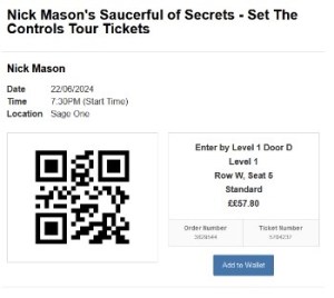 During the interval I managed to catch a pint of Guinness and the band kindly signed my ticket (see image). Next up was Ozric Tentacles whose music is less familiar to me. However, as always they provided us with an excellent set of psychedelic music. We left just as they were finishing.
